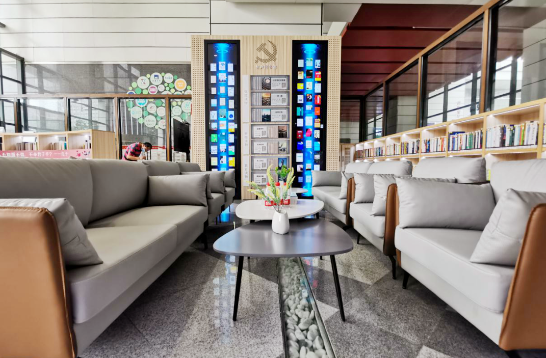 站内还配置了现时南海区最先进的墨水屏阅读本自助借还系统、瀑布流电子图书借阅系统、智能书法台、自动门禁系统等高端智能设备,贴合现代科创型读者多元化阅读需求,充分运用科技化与现代化的人机交互形式,可观看、可触摸、可体验、可下载,成为园区党员、群众自我提升、自我增值的“圣地”。