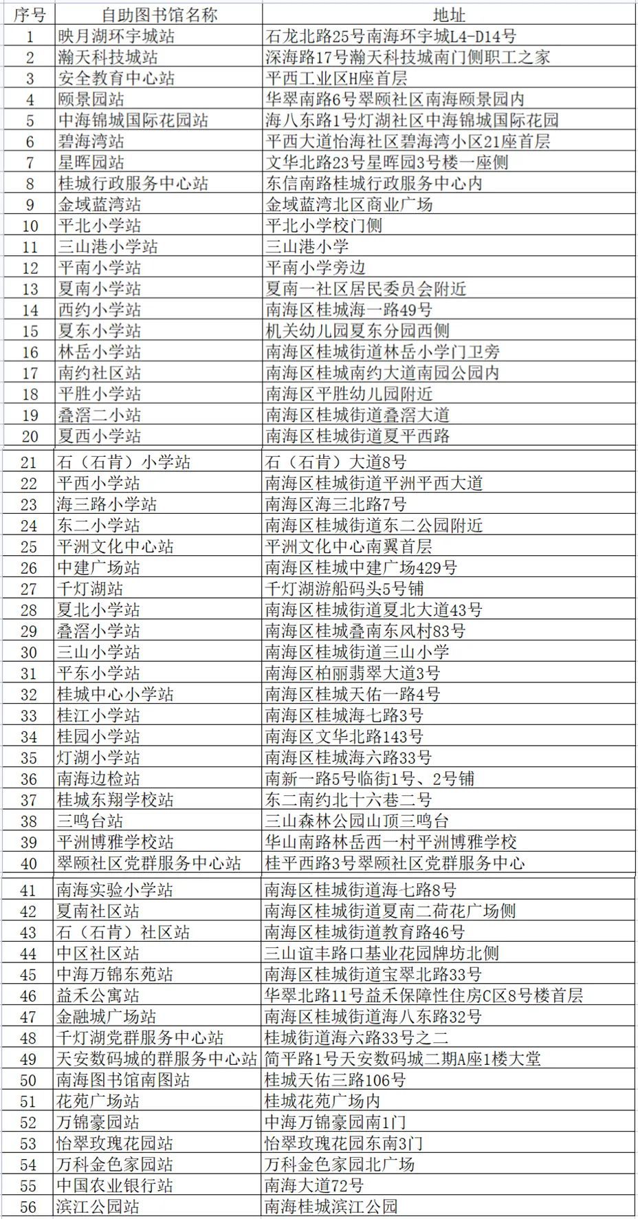 桂城读书驿站一览表