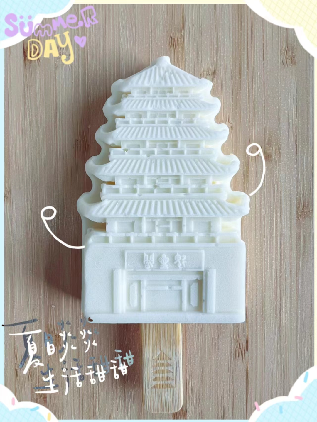 南海风物美学空间文创雪糕以魁星阁为设计原型,外形通过精巧的细节营造出逼真的立体感,将魁星阁的精美表现得淋漓尽致。