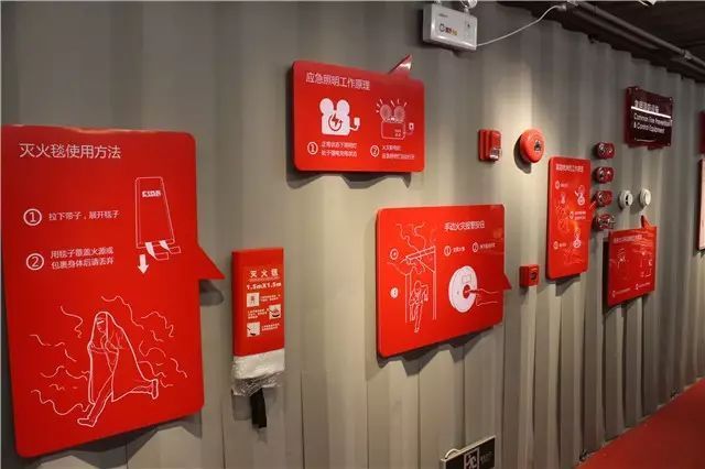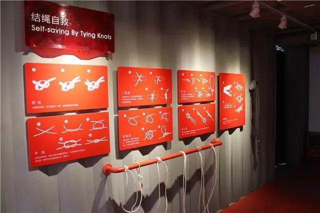消防器具、灭火器的使用方法、应急箱、逃生时绳结打法都一一展示在场馆内