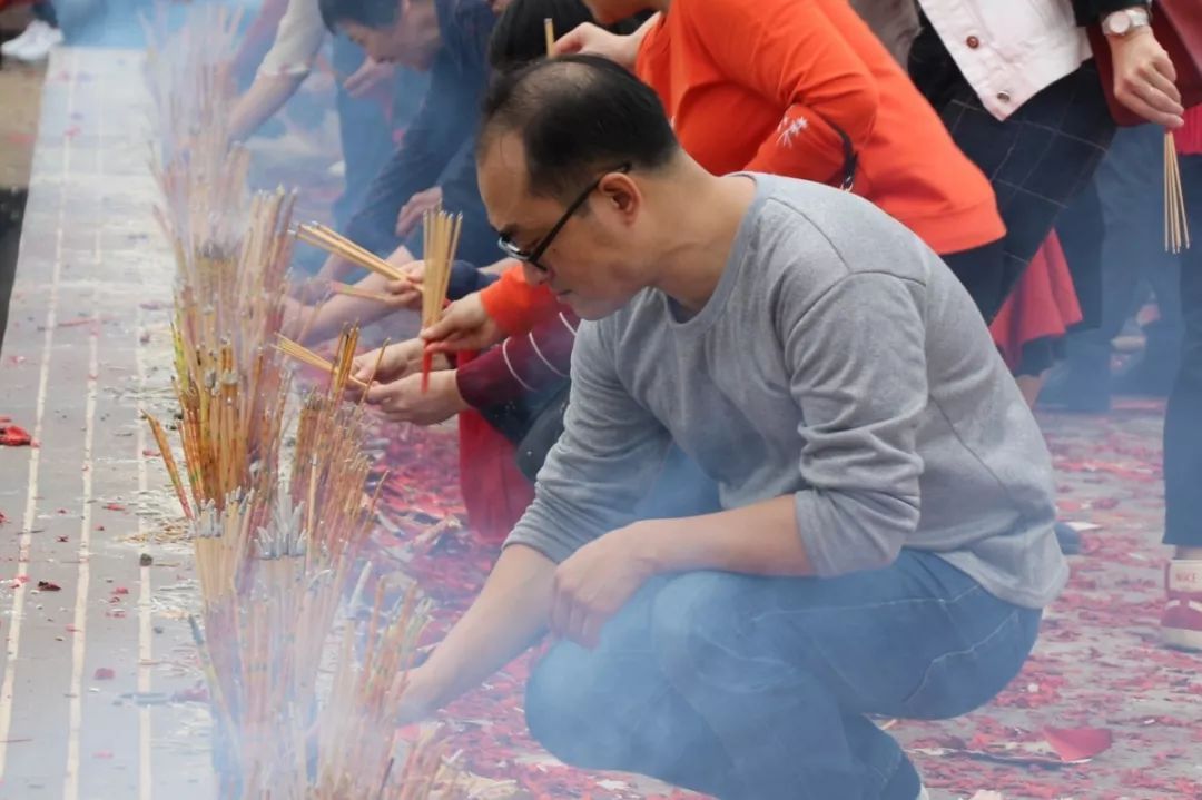 绕完三圈后,街坊们纷纷前往天后庙前虔诚地上香,祈求心愿传达上天,开年迎来好运。