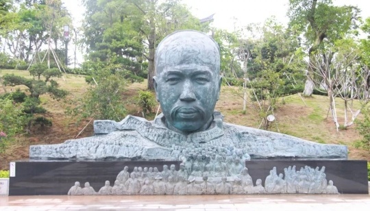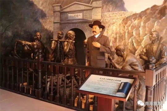 南海会馆内用橡胶制作而成的詹天佑像,无论远观还是近看都十分逼真,结合其背后的铜像,共同讲述了詹天佑主持修建京张铁路的故事。