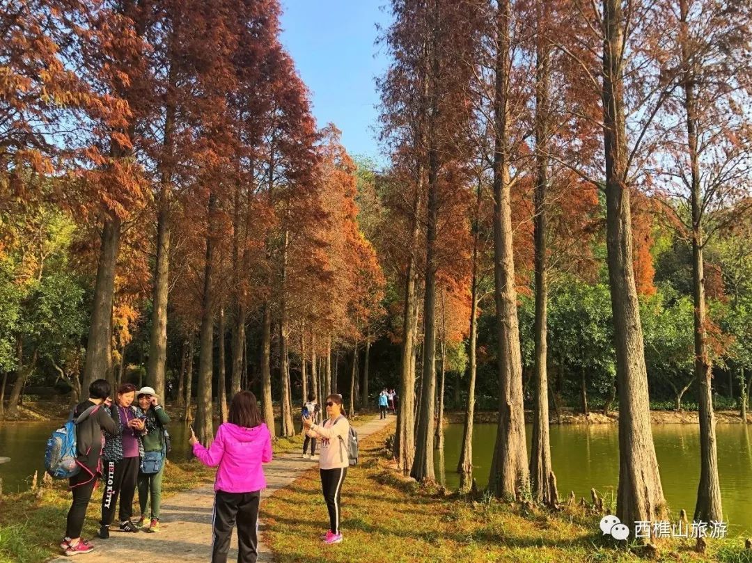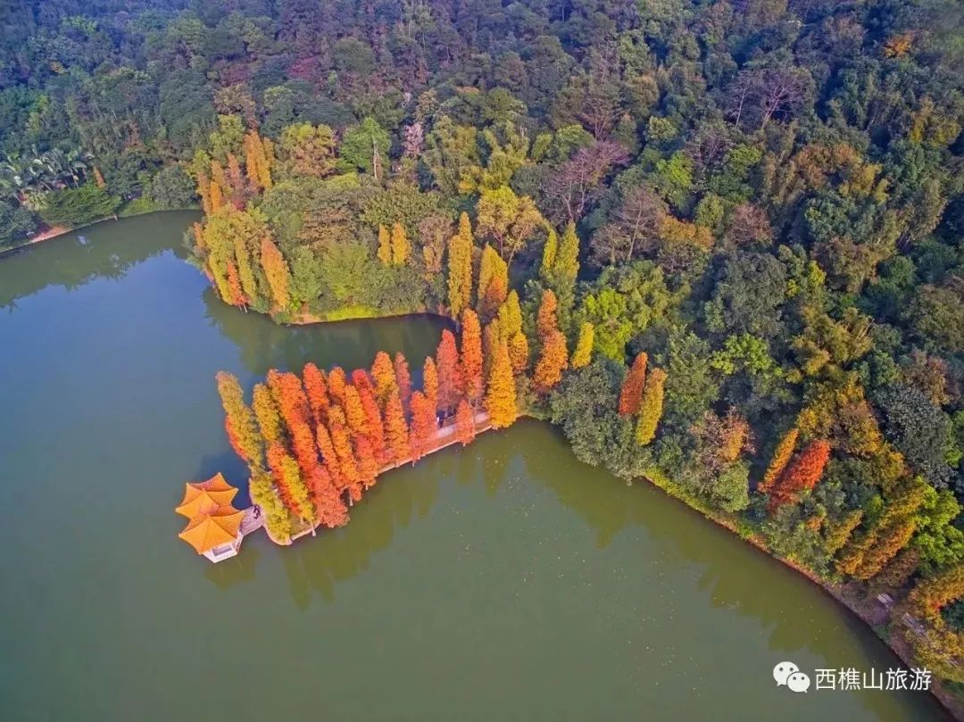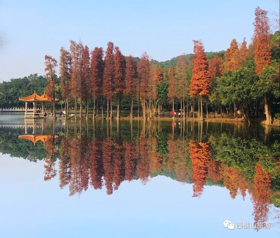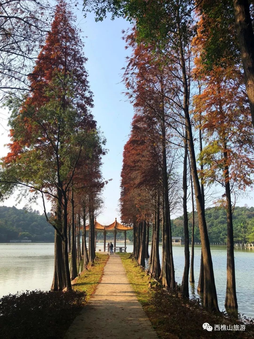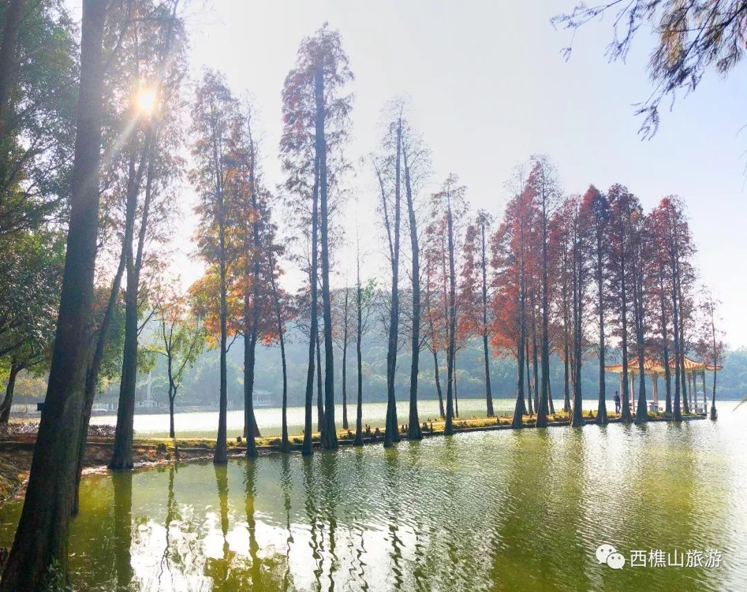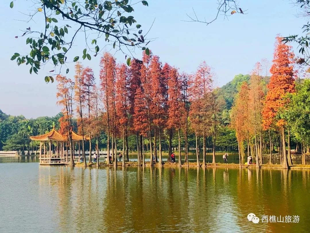 近日,西樵山天湖公园的水杉已换上新衣裳,