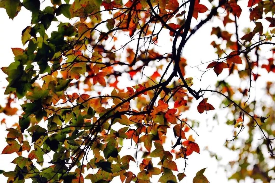 湖面仿佛一块布,被那片水杉林染得通红通红,远远看去灿烂夺目,倒映在清澈明净的星湖中的红杉林,更是美得不可思议。身处其中,阳光落下深林留下斑驳的光,微风晃动树尖,缓缓飘下红叶来,沙沙作响···