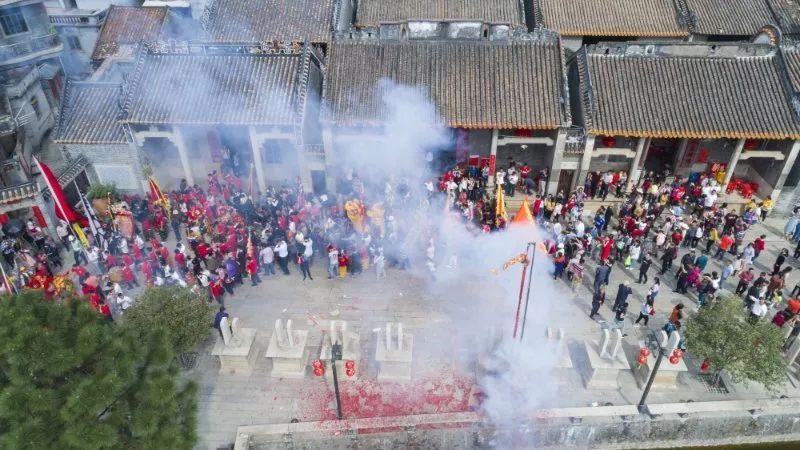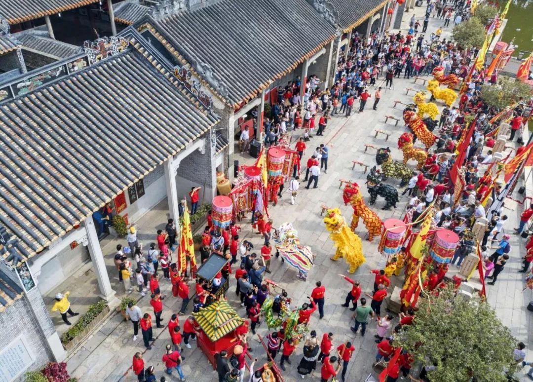 大年初四,西樵松塘村张灯挂彩,整条村布置得火洪热烈,吸引了3000多名本村、外村区氏族人及游客前来感受热闹非凡的氛围。