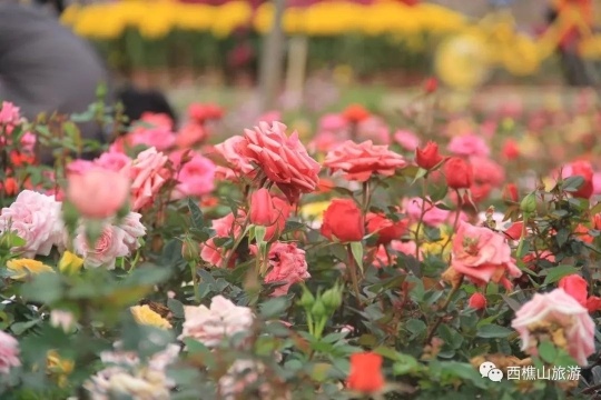 踏春的好时节,西樵山下花海连片,玫瑰花、油菜花、波斯菊争相怒放,“人在花丛走,恰似画中游”。