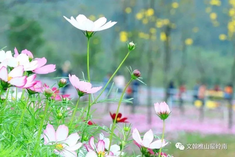 花期:波斯菊已全面盛开、黄金风铃木已逐渐凋谢,赏花趁早!
