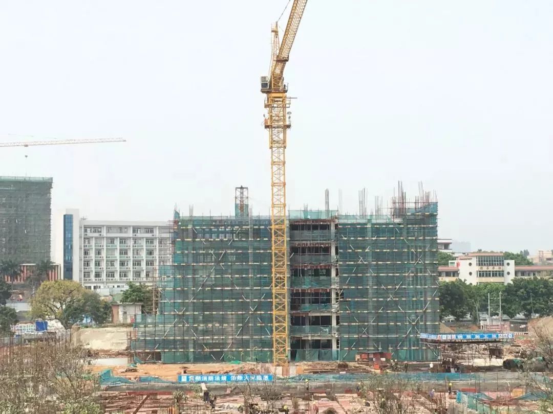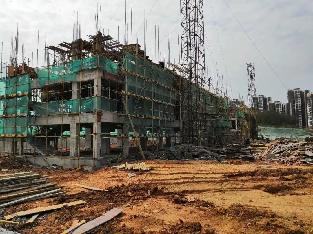 综合楼1已完成至第五层,综合楼2地下室完成垫层。