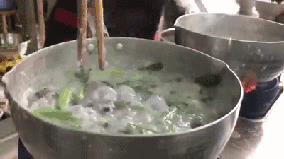 “聚友品尝粥粉面,城乡繁荣客如云”