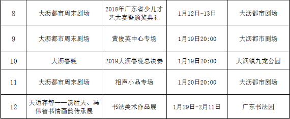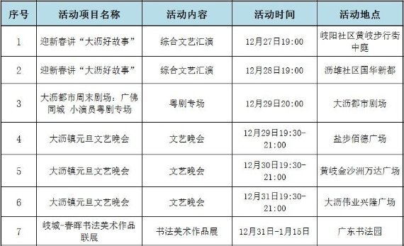 大沥镇元旦至春节期间文化活动预告