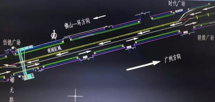 从穗盐路驶向佛山一环方向的东往西车辆,行驶到时代广场红绿灯路口时、根据路障指示向左前方借道对向车道行驶。或提前在盐步大道与穗盐路交汇路口右转,绕盐步大道,广佛新干线通行。