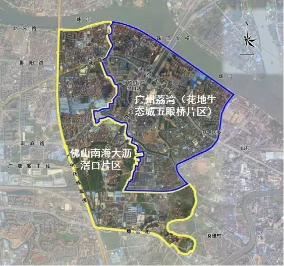 早在2015年,广州市荔湾区与佛山市南海区就签订了《共建广佛同城化合作示范区框架协议》,拟在五眼桥-滘口片区启动广佛同城化综合开发治理试验片区,共建“广佛新城”。