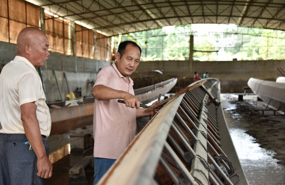 值得一提的是,新桥村现有16艘龙舟,当中既有20年历史的“长龙”,也有新购的“标准龙”,材质涵盖杉木、柚木、坤甸木。每年端午前,村民们都会将沉睡在船坞中的龙舟“唤醒”,邀请专业师傅对其进行全面保养,体现代际更迭中的匠心守护。