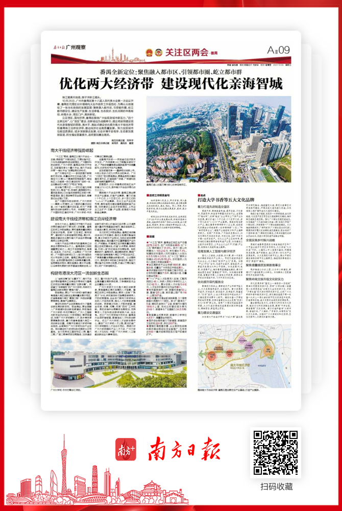10月26日,广州市番禺区第十八届人民代表大会第一次会议开幕,番禺区代理区长叶珊瑚向大会作政府工作报告时,为禺山大地描绘了一张生机勃勃的发展蓝图:聚焦融入都市区、引领都市圈、屹立都市群定位,建设生产发展、生活幸福、生态良好、生机无限的华南枢纽、岭南水乡、湾区门户、高铁新城。