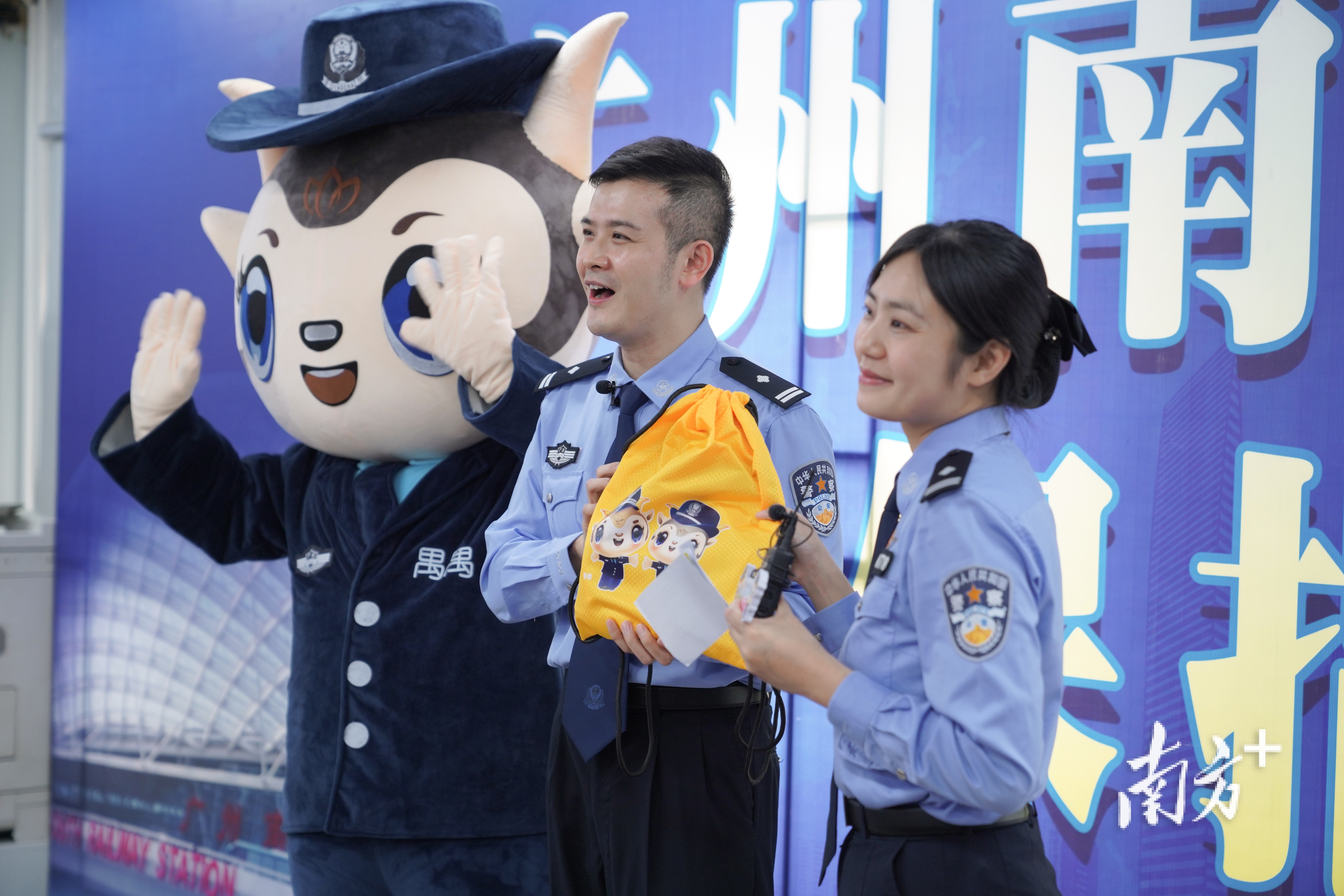 另外,在长隆野生动物世界以及万博商圈分会场,番禺公安围绕着假期景区交通、反诈防骗、出行安全等方面展开了一系列活动,同时还与现场的市民朋友展开互动,通过提问的方式,为市民朋友科普相关知识。现场以及线上的答题踊跃者都获得了以“番番、禺禺”为原型设计制作的大礼包。番禺公安本次的直播活动,通过了四个会场的在线联动直播,给观众带来直观、新颖的体验,让市民朋友在假期的第一天,就了解到番禺区交通枢纽、热门景区商圈的最新情况,同时还能学习到反诈防骗、交通安全等知识,吸引了众多网友的点赞和关注。当天直播观看量超过11万人。