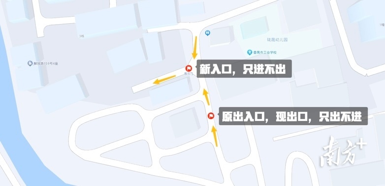 其中,解放路第二停车场位于居住人口密集的解放路迎曦大街14、16、18号老城区,车场周边道路相对狭窄,进出容易发生堵塞,扩建后停车场的进出口从“一进一出”增至“两进两出”,从而提高车辆进出效率,为周边居民提供良好的停车体验。