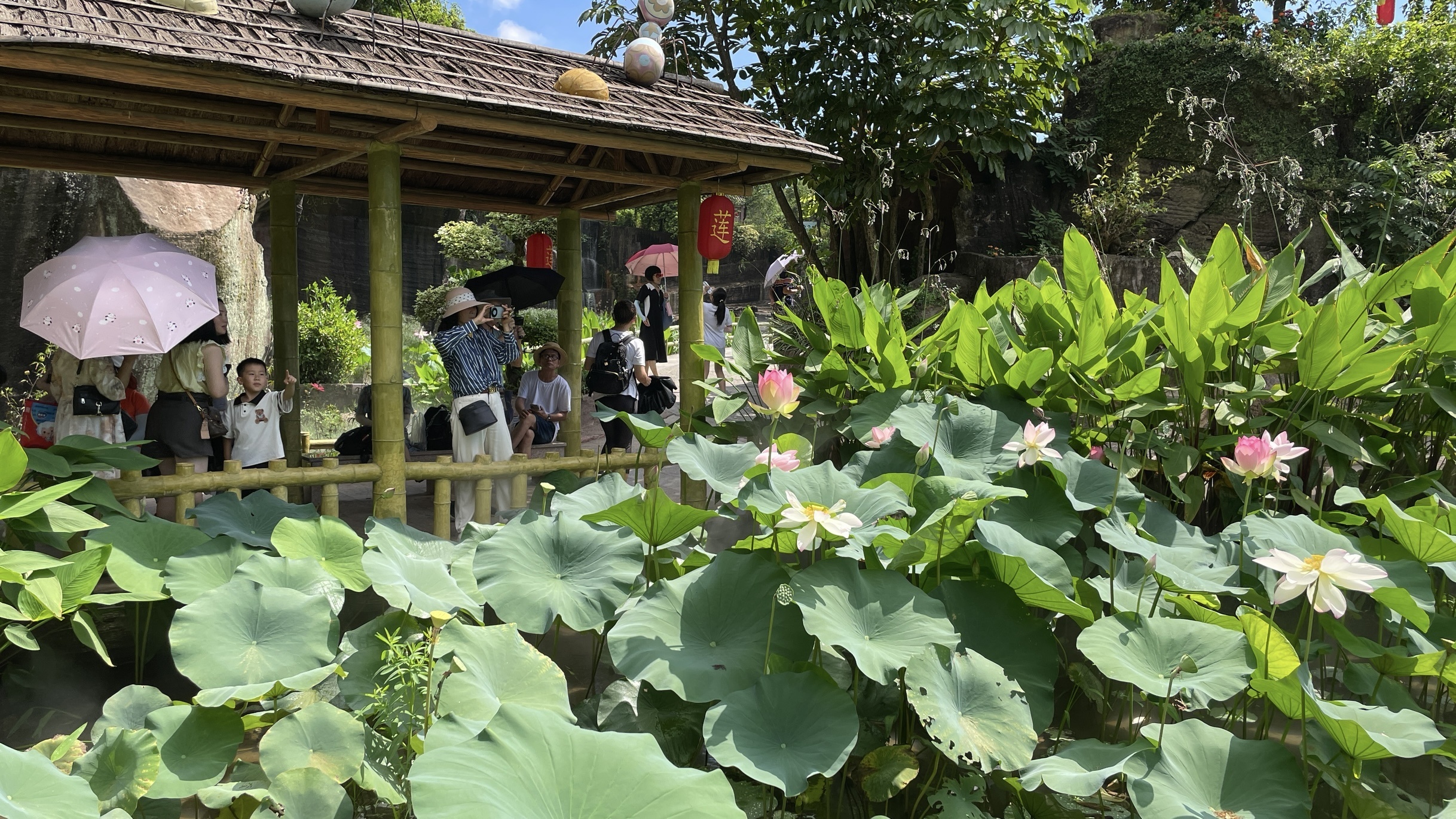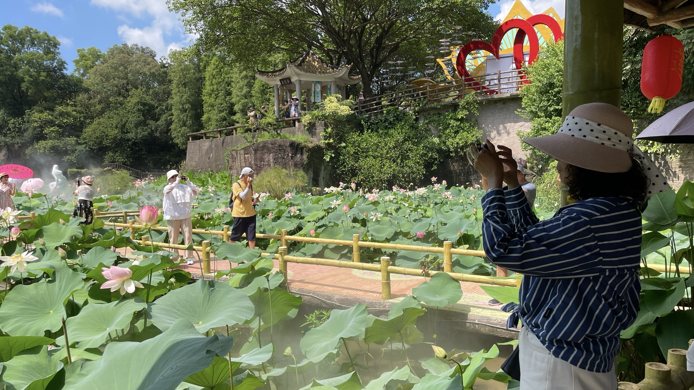 目前,莲花山旅游区共有1200个荷花品种,近600个睡莲品种,吸引了不少游客前来赴一场荷花之约,摄影爱好者更是毫不吝啬自己的镜头,快门声不绝于耳,定格一帧帧荷色,留下无数唯美荷影。
