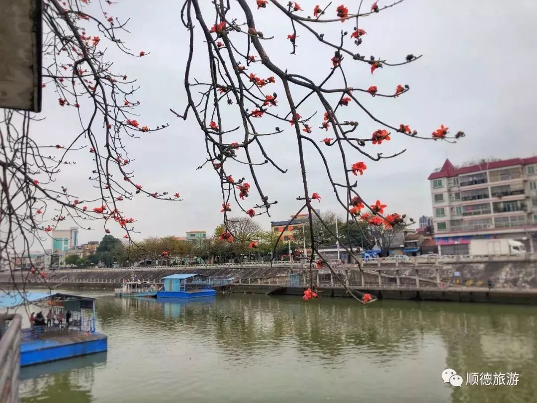 乍暖还寒的2月,在勒流勒北渡口,一棵棵高大挺拔的木棉树开得正盛,朵朵“红色火焰”缀满枝丫,仿佛预示着新的一年红红火火。