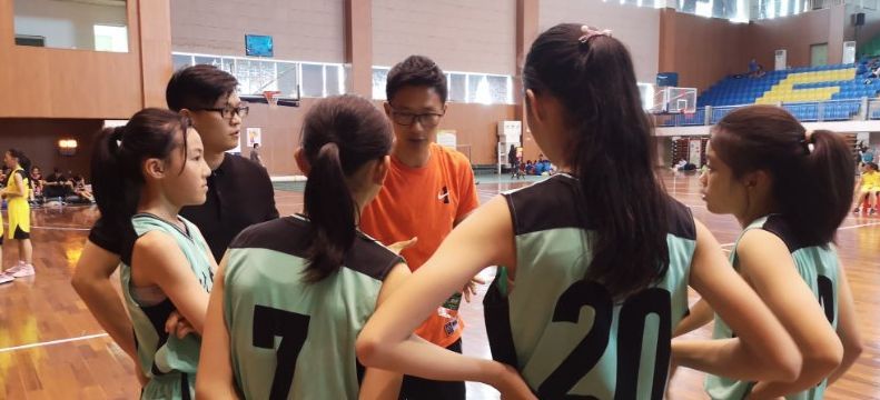 ▲2019年佛山市小学生篮球赛上主教练员钟杰现场指挥。