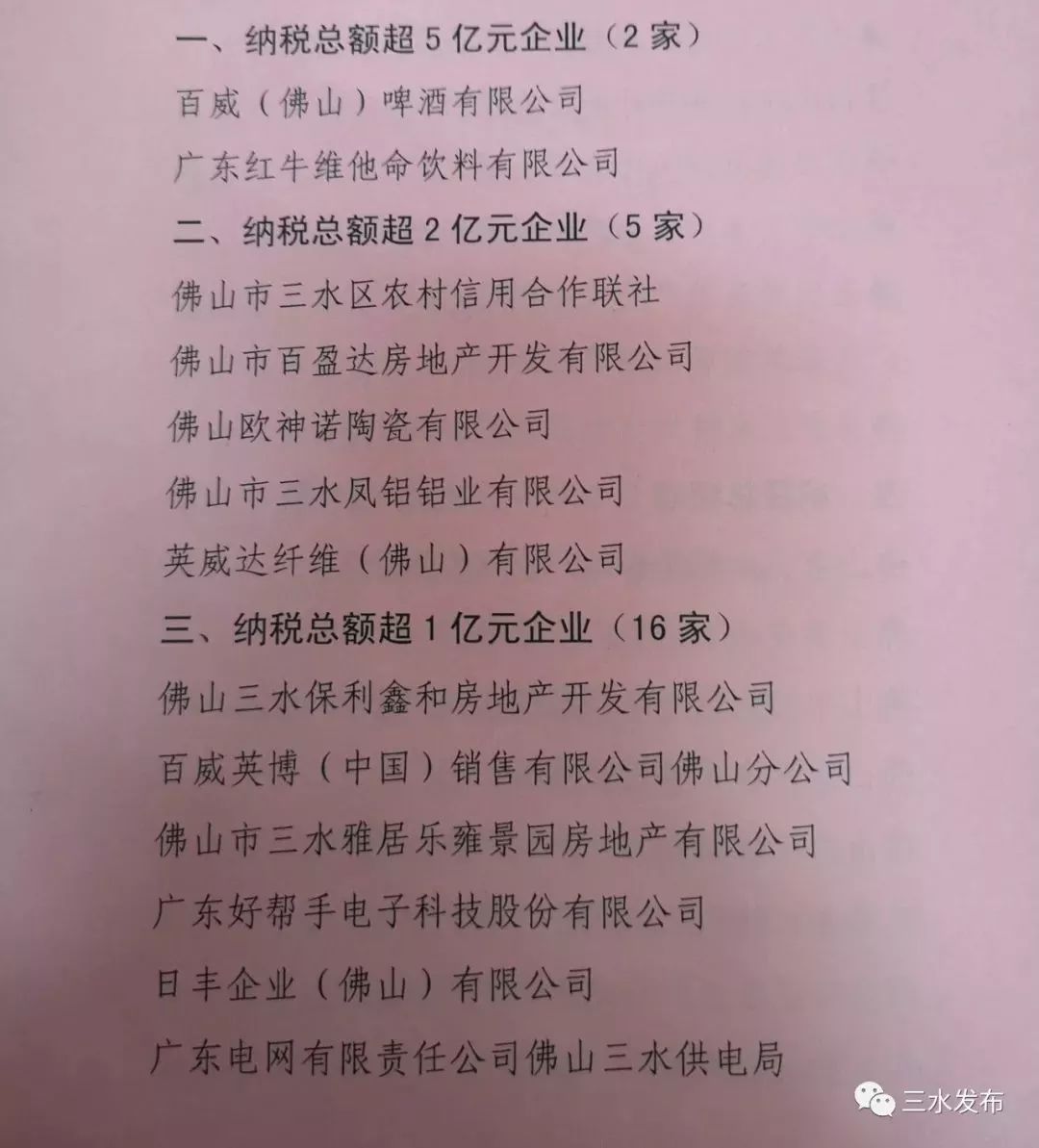 三水2018年度超亿元纳税大户