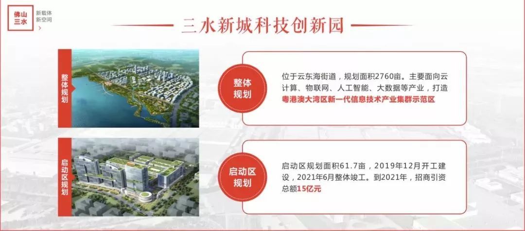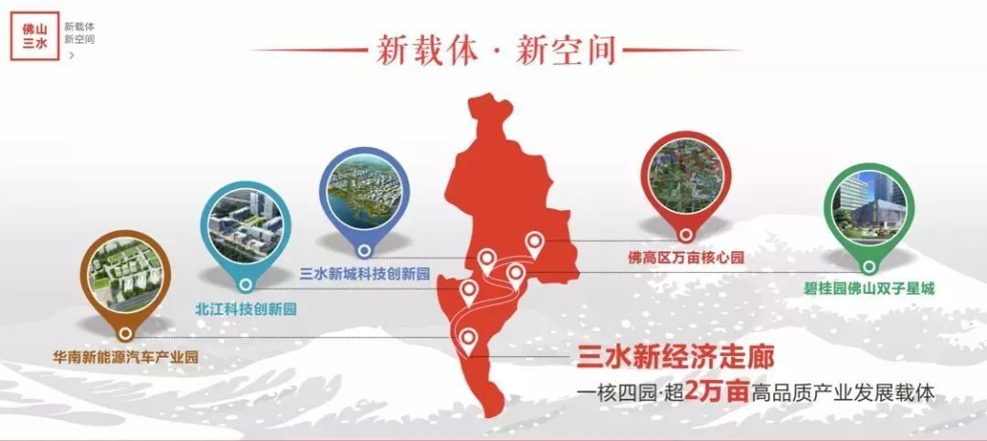 以创新为导向、以项目为王,今年三水将打造一流平台载体,提高承接大湾区优质资源的承载力和竞争力。按照“湾区孵化,三水转化”的思路,建设三水高质量发展新经济走廊,以优质的载体充分对接广深港澳科技创新走廊。围绕一环西拓沿线各产业载体,谋划佛高区万亩产业园、三水新城科技创新园、碧桂园•双子星城、北江科技创新园、华南新能源汽车产业园等一批优质产业载体,致力打造大湾区科技成果产业化重要承载基地,建设大湾区活力之区。