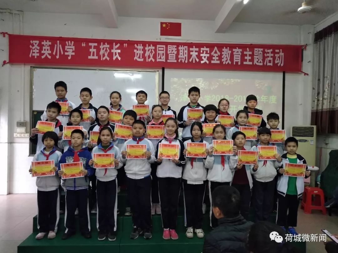 2月19日,荷城一小举行了开学典礼。开学典礼中为上学期获得“先进中队”和“文明雏鹰中队”班级颁发了奖状,对在期末质量检测中成绩优秀的同学进行了表彰。
