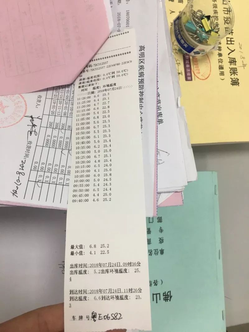 经过现场检查及查询资料,我镇预防接种门诊疫苗存放温度严格控制在2-8度、温度登记记录完善、疫苗数量与库存一致、出入库登记记录完善、“生物制品批签发证明”完善,疫苗的出库环境温度、到达环境温度都严格控制,未出现异常情况。