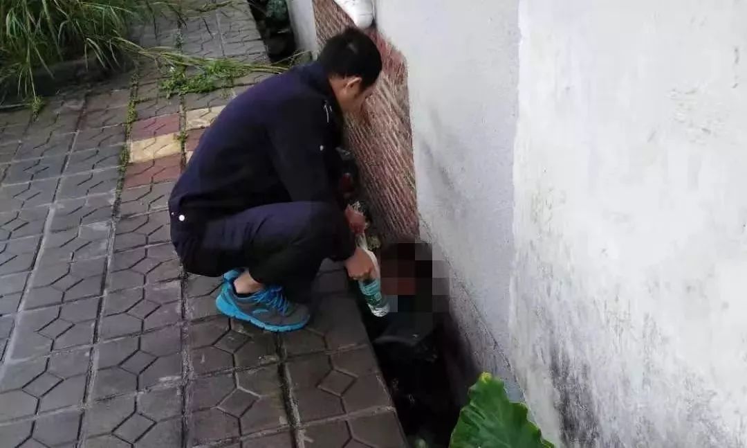 因前一晚刚刚下过雨,而他又在排水渠泡了一夜,所以身上的衣服全部湿透,冷得他缩成一团。民警马上帮其换上干净的衣物,又给他买来饮用水和食物,男子一口气将一支矿泉水全部喝光,然后才拿起面包狼吞虎咽。