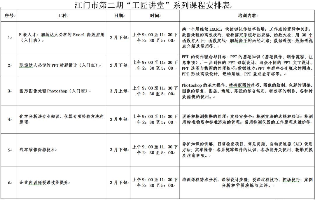 2.江门市第二期“工匠讲堂”系列课程安排表