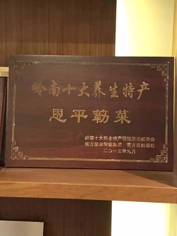 簕菜是最具特色的恩平特产之一。恩平独特的自然资源和气候条件,产出的簕菜酥脆、甘凉、爽口,入口微苦,风味独特。经过多年的发展,恩平簕菜产业已形成5大企业和3大合作社为支撑的格局。注册了6个商标品牌,多个产品通过无公害产品认证,获得相关发明专利。相继获得“广东省名特优新农产品”“岭南十大养生特产”“江门市名特优新农产品”“江门优秀旅游商品”“江门十佳农土特产品”“江门第四届农业博览会优质产品”等荣誉。2015年,恩平簕菜成功通过“国家农产品地理标志产品”登记。