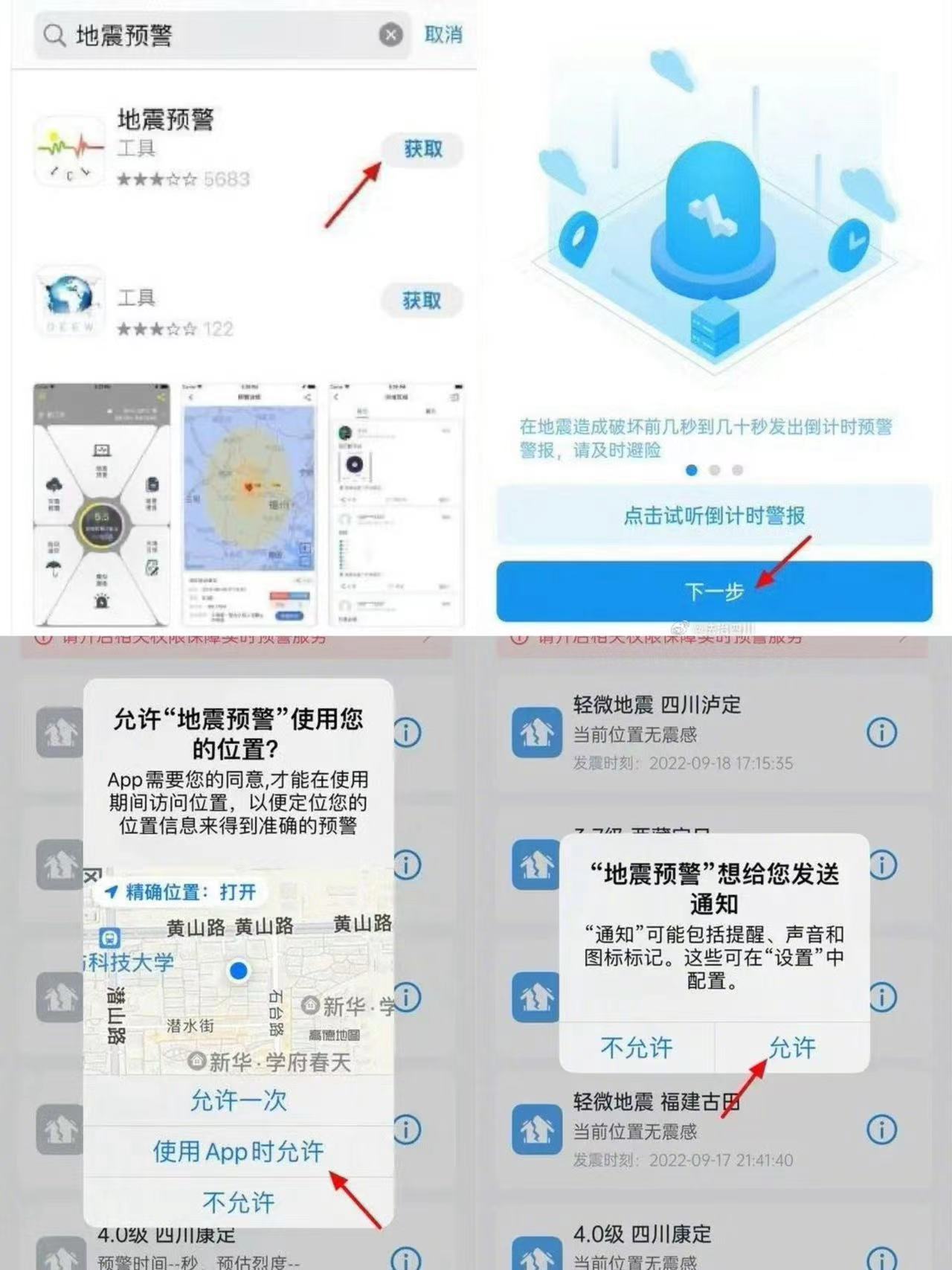 苹果/三星/其它手机:搜索“地震预警”关键词,自行下载相关App。