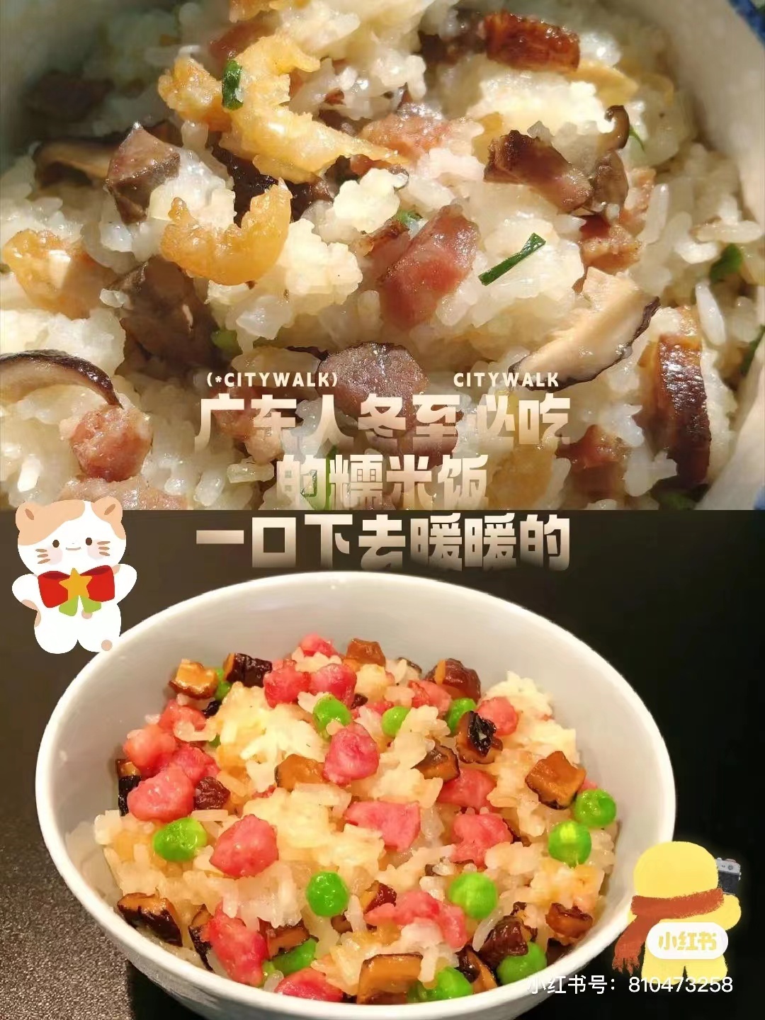 广东糯米饭讲究的就是一个真材实料,有什么放什么。糯米,腊肠,腊肉,腊鸭腿,冬菇,瑶柱,鱿鱼干,小虾米……想不香都难。