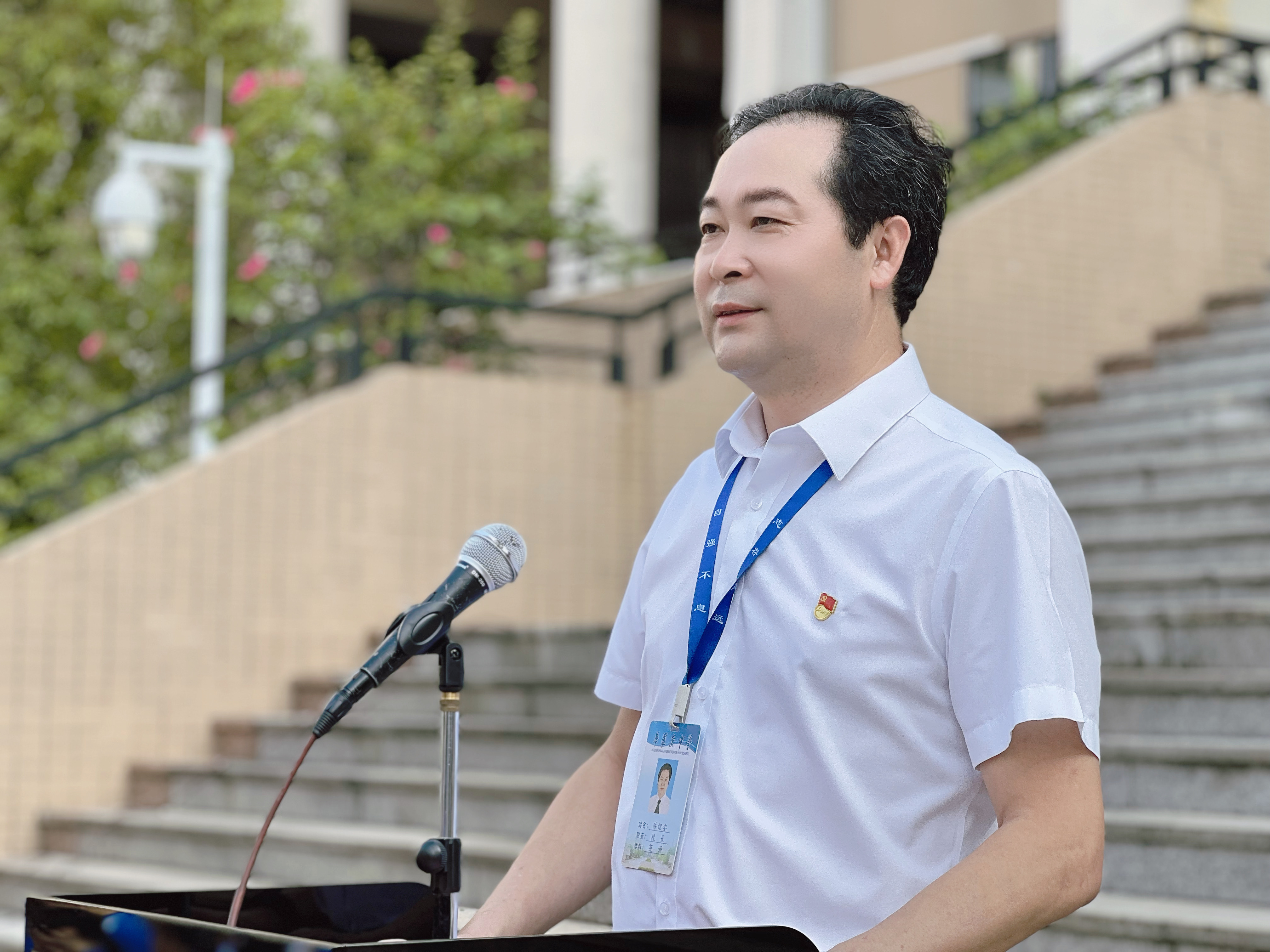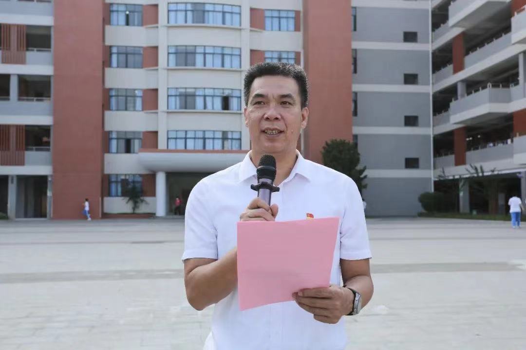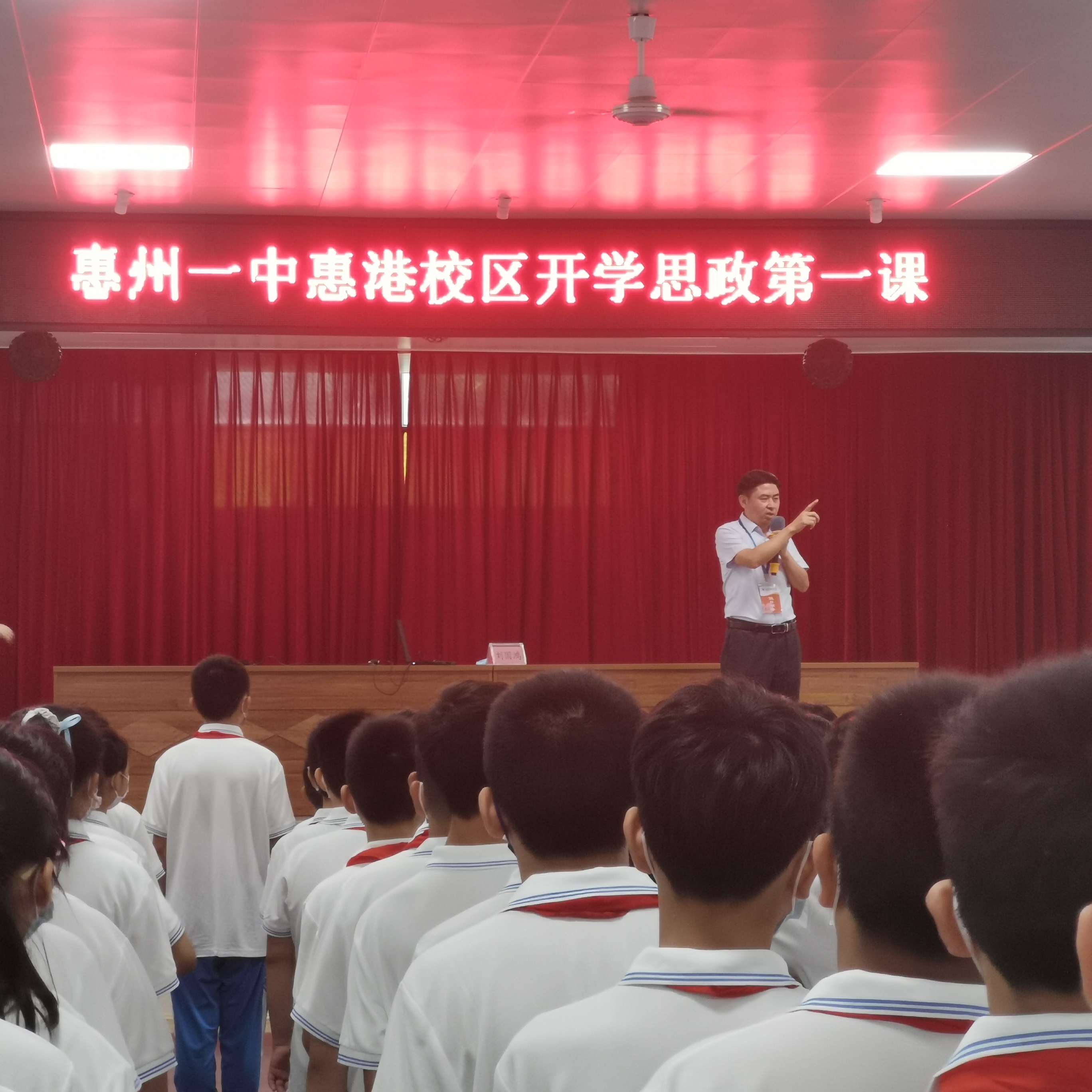 被惠州一中托管后,惠港校区迎来全新的发展时刻。面对新的发展机遇和挑战,校长刘国鸿以“启航新征程,逐梦向未来”为主题开讲思政第一课。他首先提出,要做爱国爱党的中国人,做爱校荣校的一中人。