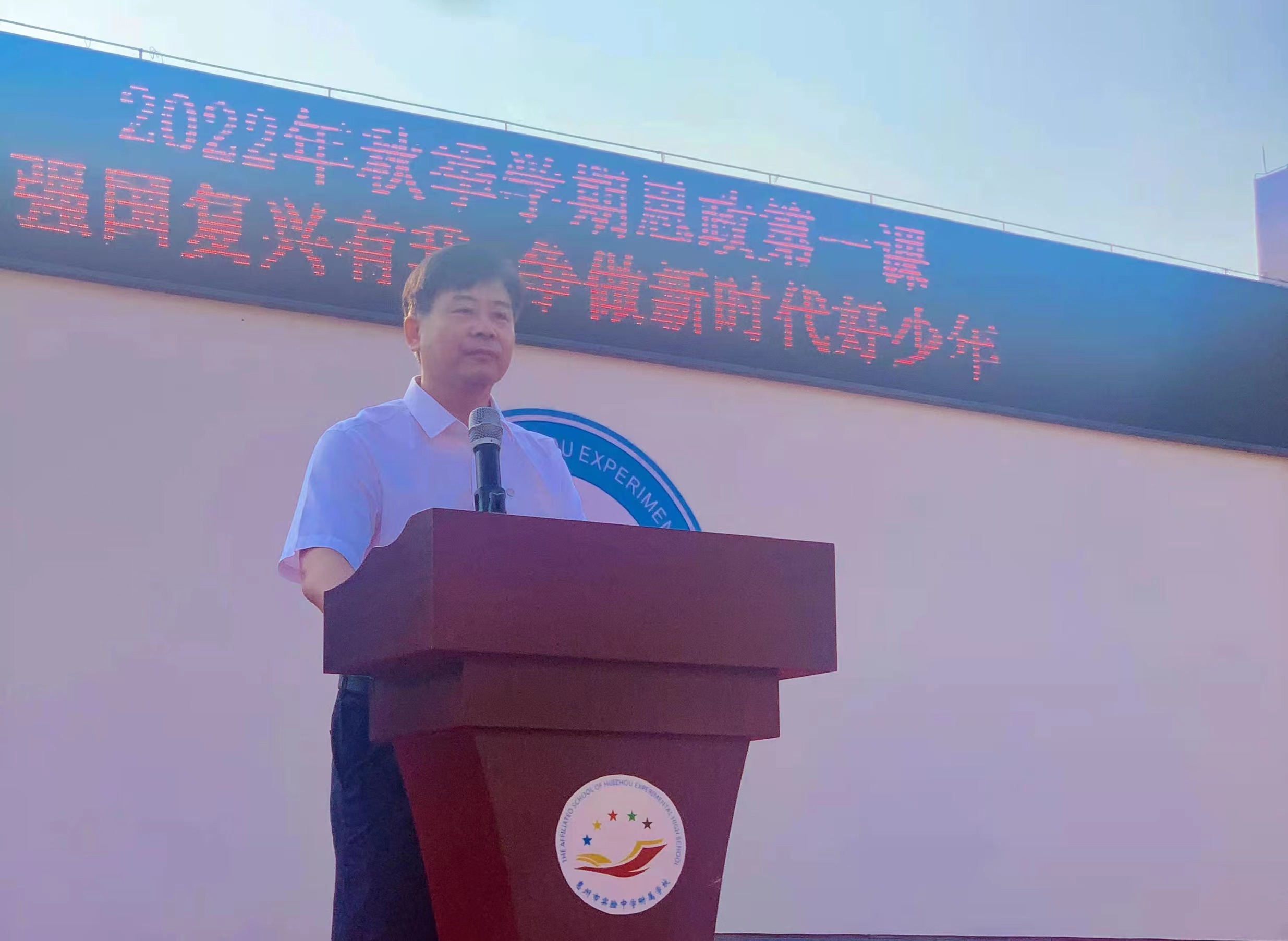 刘国鸿说,作为一名新时代的中学生,要有爱国爱党的情怀,永远听党话、跟党走,坚定理想信念,学好本领,报效祖国。涵养爱国情怀的过程中,同学们首要的是爱自己、爱父母、爱同学、爱老师,爱身边的人。其次,要爱学习、爱劳动、爱锻炼、爱生活、乐于助人、学好本领,逐梦未来。