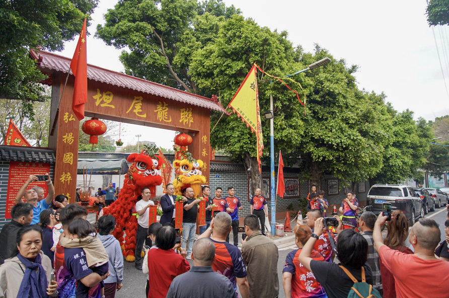 今年三月,坦尾村恢复举办了已停办40多年的“二月二、龙抬头”活动。当天活动坦尾村邀请了来自广州荔湾以及佛山南海多条兄弟村前来联谊助兴,各村村民齐聚一堂,品尝龙船饭,共诉乡情,席间村民还抬着龙头、龙尾巡游,作为另一种寓意的“龙抬头”,将现场气氛推向高潮。