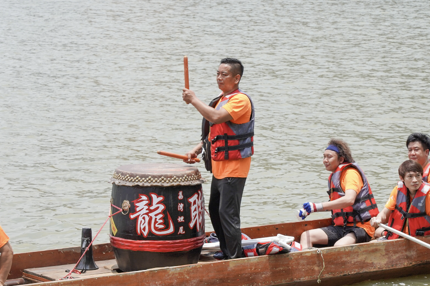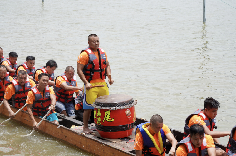 全体扒仔在声声鼓点中划动龙舟