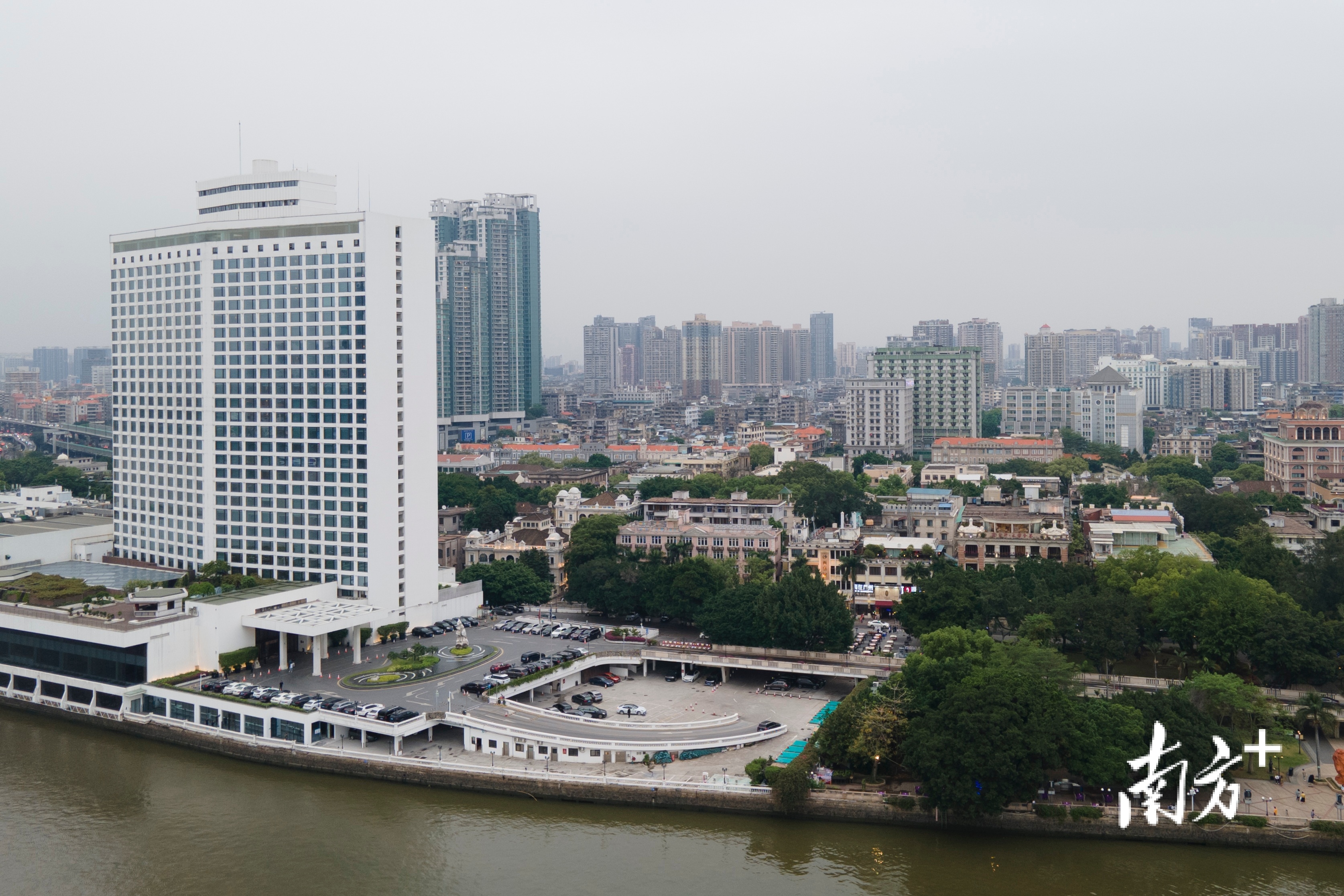白天鹅宾馆矗立在沙面岛南岸