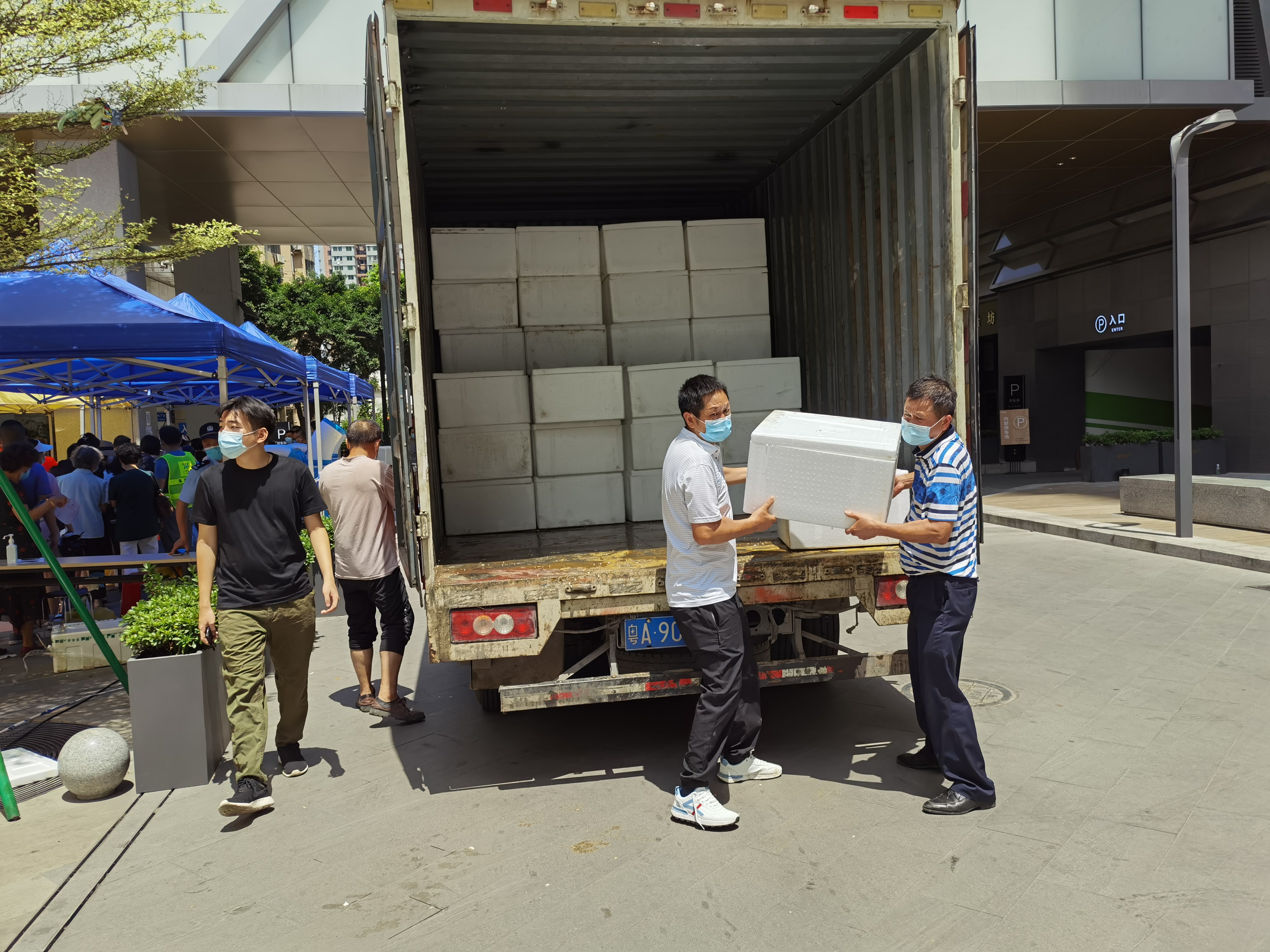 为防止医务人员和待检市民中暑,创造更加舒适的采样环境,5月22日,荔湾区市场监督管理局积极响应区委号召,第一时间协调爱心企业为6个核酸检测点(龙津街党群服务中心、盛悦居、新光广场、和业广场、荔湾体育馆、龙津华府)各送去20箱冰块,共120箱,为在采样点工作区一线的工作人员防暑降温,送去阵阵清凉。“疫情下,他们保护我们,我们守护他们。”负责搬运冰块的爱心企业相关负责人说。