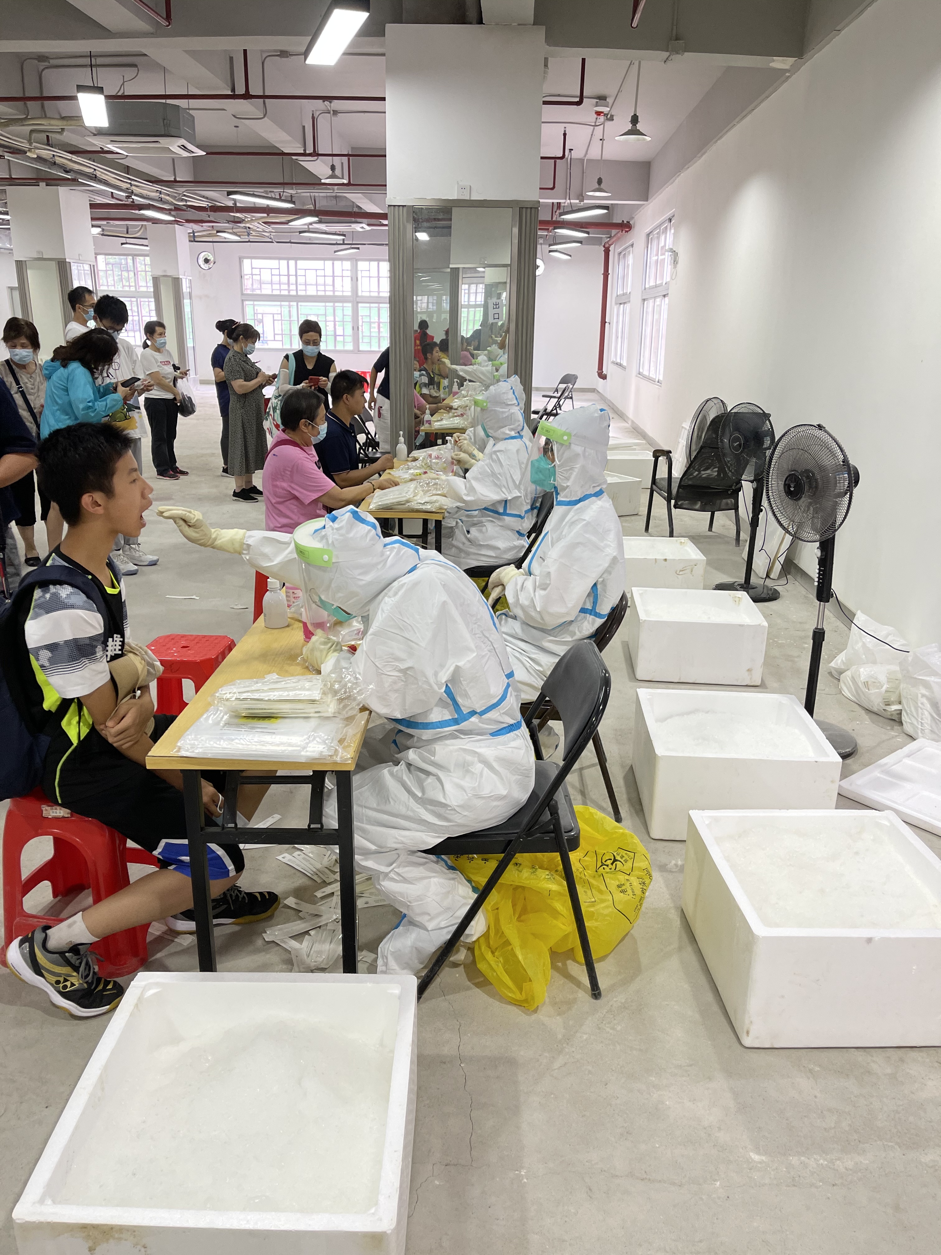 自广州荔湾区确诊患者初筛检测报告为阳性起,该区共设置了6个核酸检测采集点,采集重点区域和重点人群核酸样本。由于采样工作多在室外进行,现场空旷、没有遮蔽,加之防护服密不透风,室外采样高温难耐,多张一线医护人员汗流浃背的照片“刷屏”朋友圈。