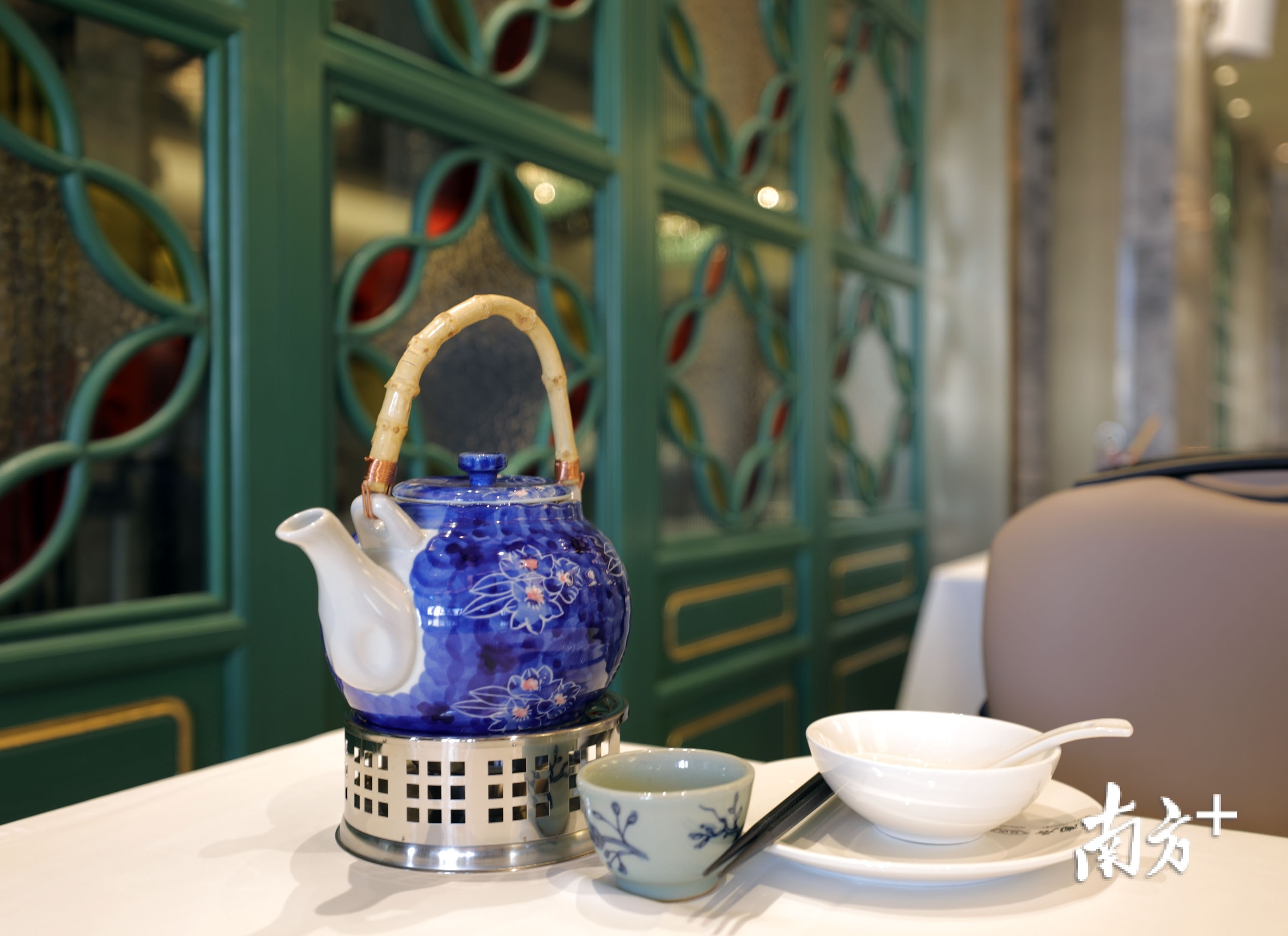 以莲香闻名的莲香楼内部的装潢设计也以“莲”为主,巨型的莲花吊灯、莲花满洲窗、莲花座椅木雕等,步步有“莲”,古雅大气。