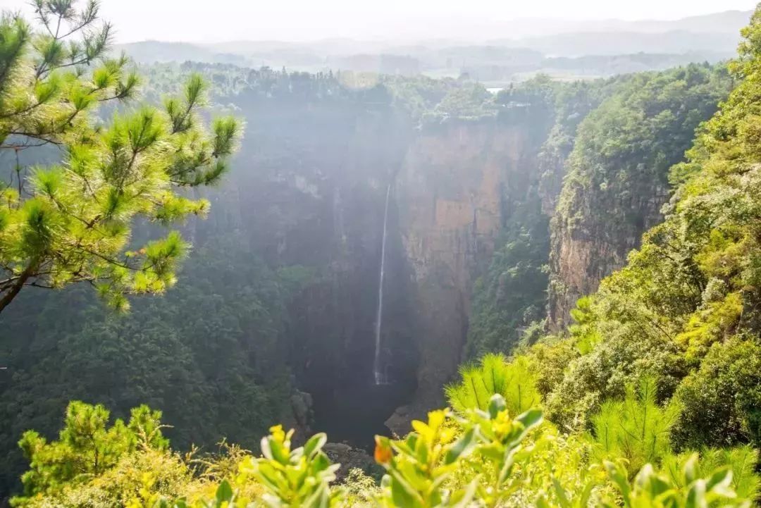 乳源大峡谷这道“伤痕”宛若巨斧劈开,最高深切度达400多米!平静的大布河流来到这里突然奔腾而出,垂直冲下,形成一条气势磅礴的瀑布!神秘的绿色森林,震撼的谷间瀑布,在这里触手可及……