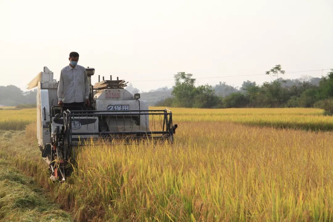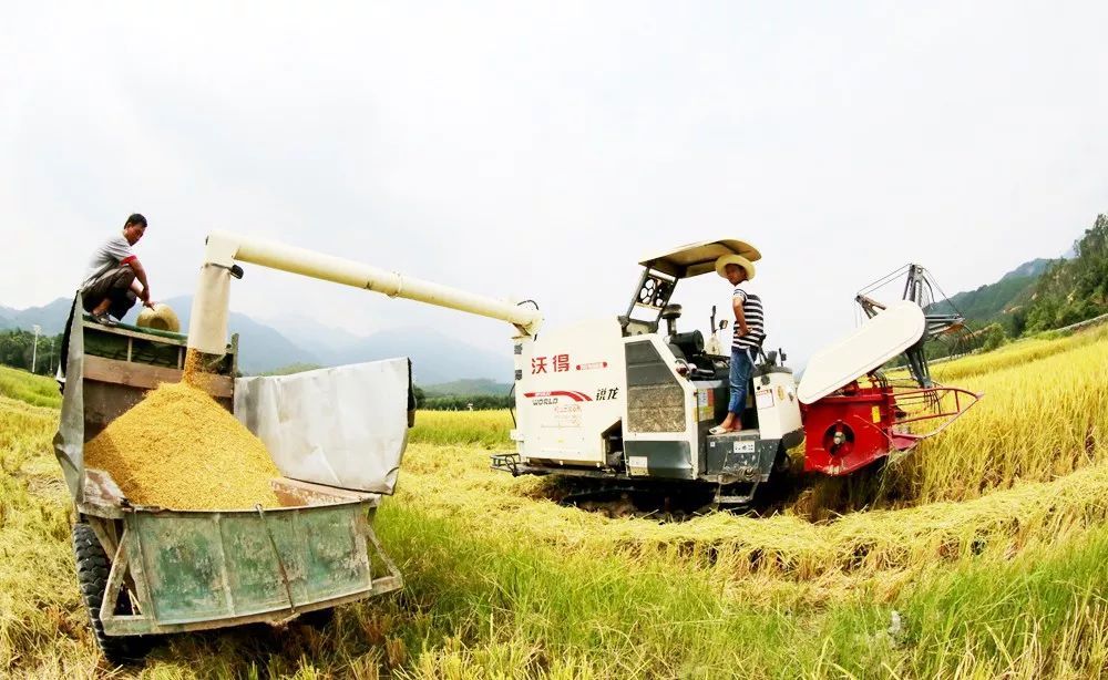 农民机械化收割水稻