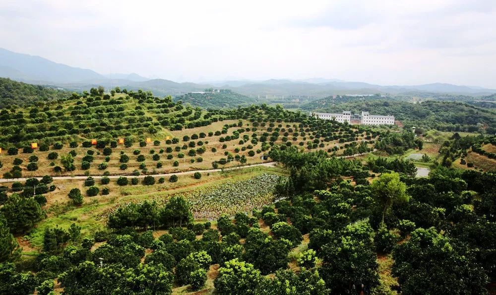 ▲仁化县大桥镇的“长坝金柚”已经超过2万5千亩。(无人机航拍)童铜韶 摄