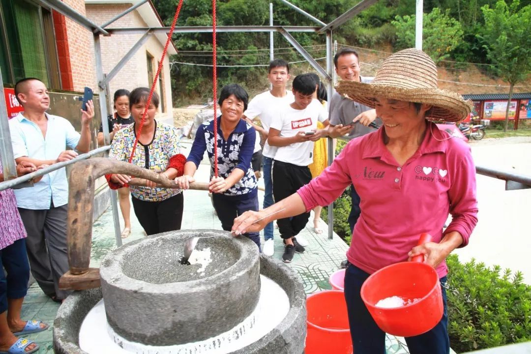 ▲武江区江湾镇“农丰节”主会场,村民现场磨米浆。 陈励 摄