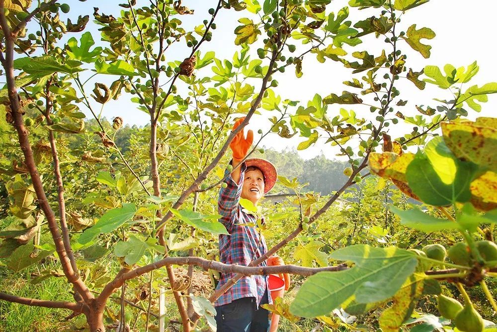▲农户在重阳镇的英俊家庭农场里采摘无花果。 陈励 摄