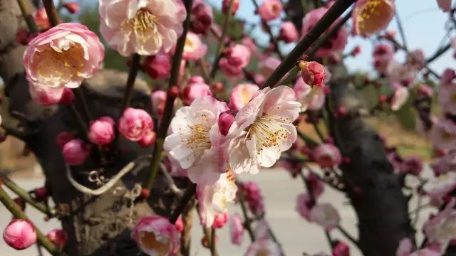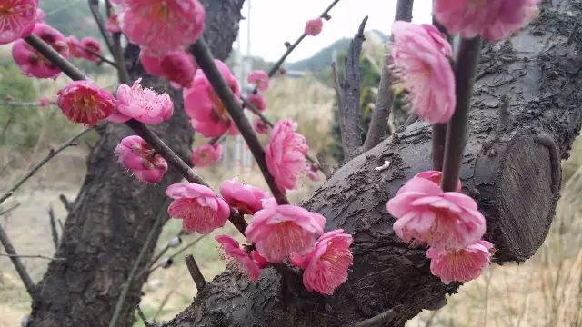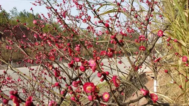 梅关古道的红梅也有多个品种,有单瓣、重瓣,颜色有玫红、粉红,桃红等,红梅花期在一到三月份,观赏期较长。因品种各异,开花也有先后,如六祖寺后面那几棵玫红色的到了3月还可见花。