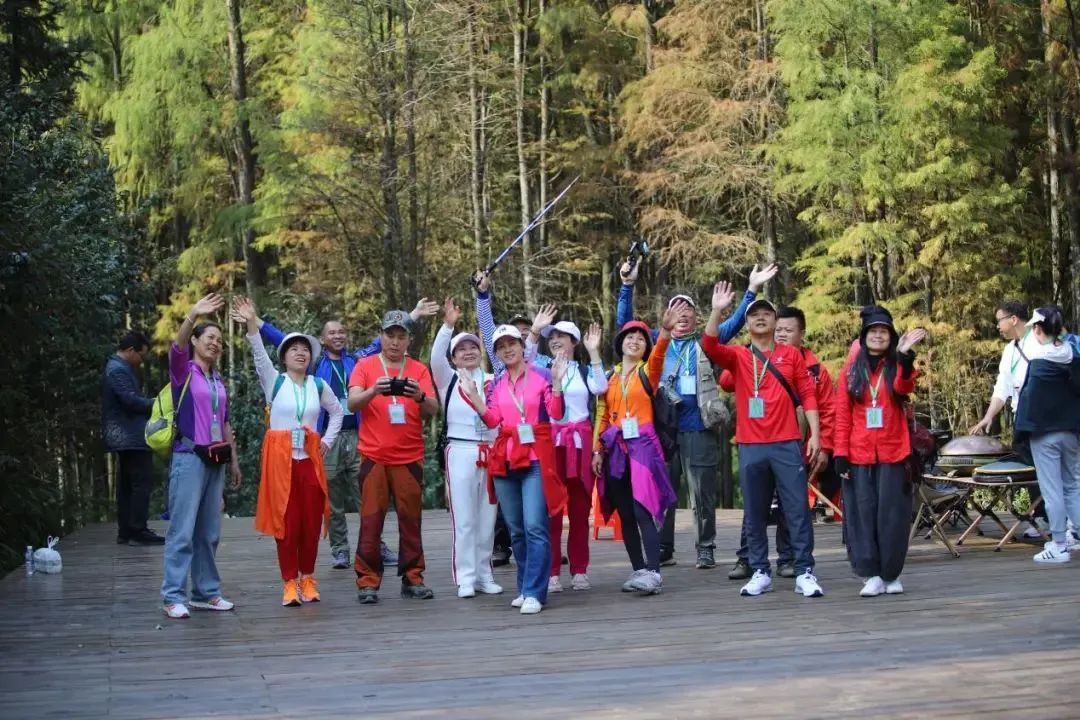 参与者在徒步途中合影留念。图片由广东省天井山林场提供
