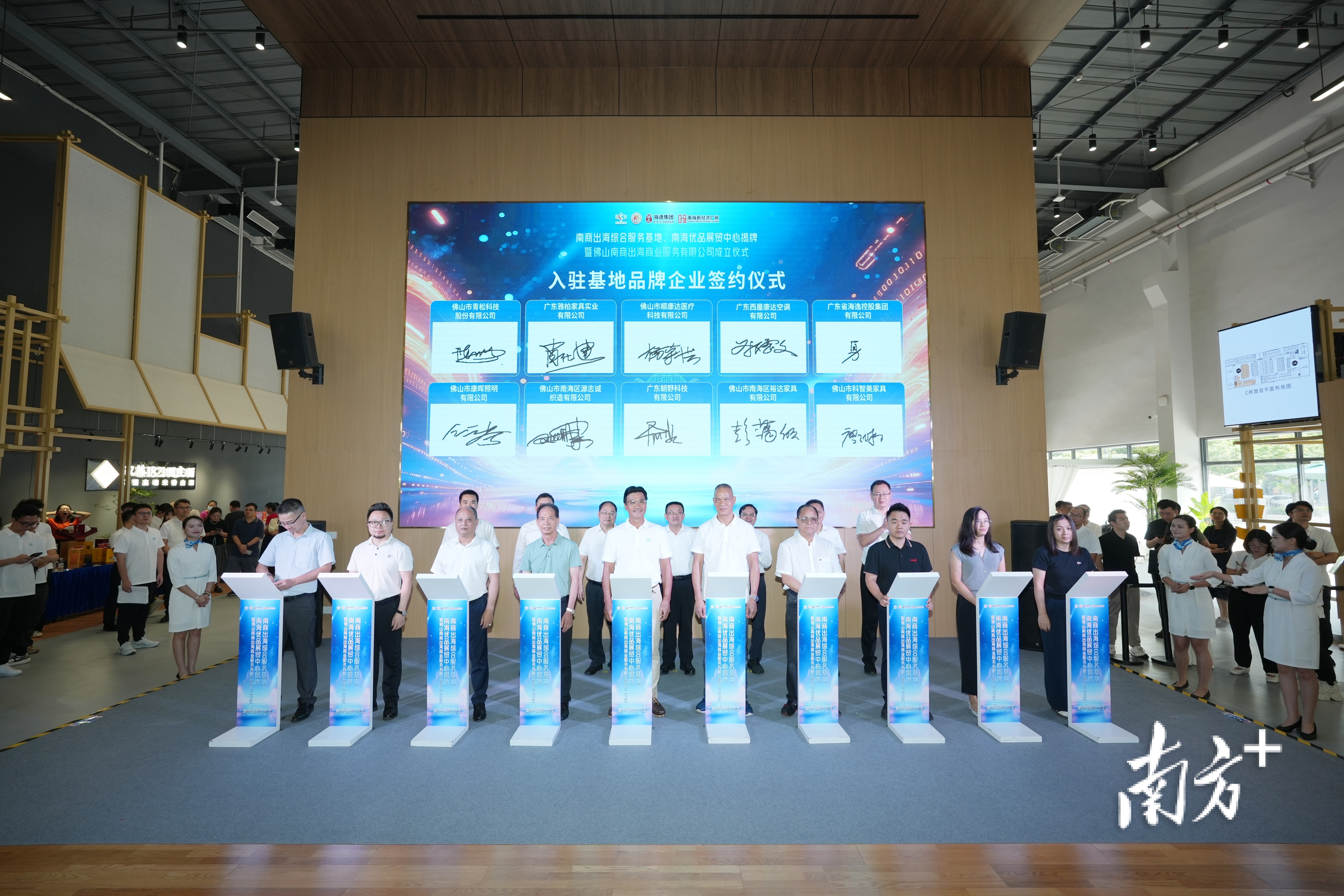 在现场活动的签约环节,首先举行了入驻基地品牌企业代表的签约仪式。截至目前,已有68家南海企业正式入驻基地,覆盖泛家居、大健康、新能源等多元领域,是南海制造实力与文化底蕴集中体现的代表。这些企业将携手以“南海舰队出海”之势,让南海品牌走向更广阔的全球市场。
