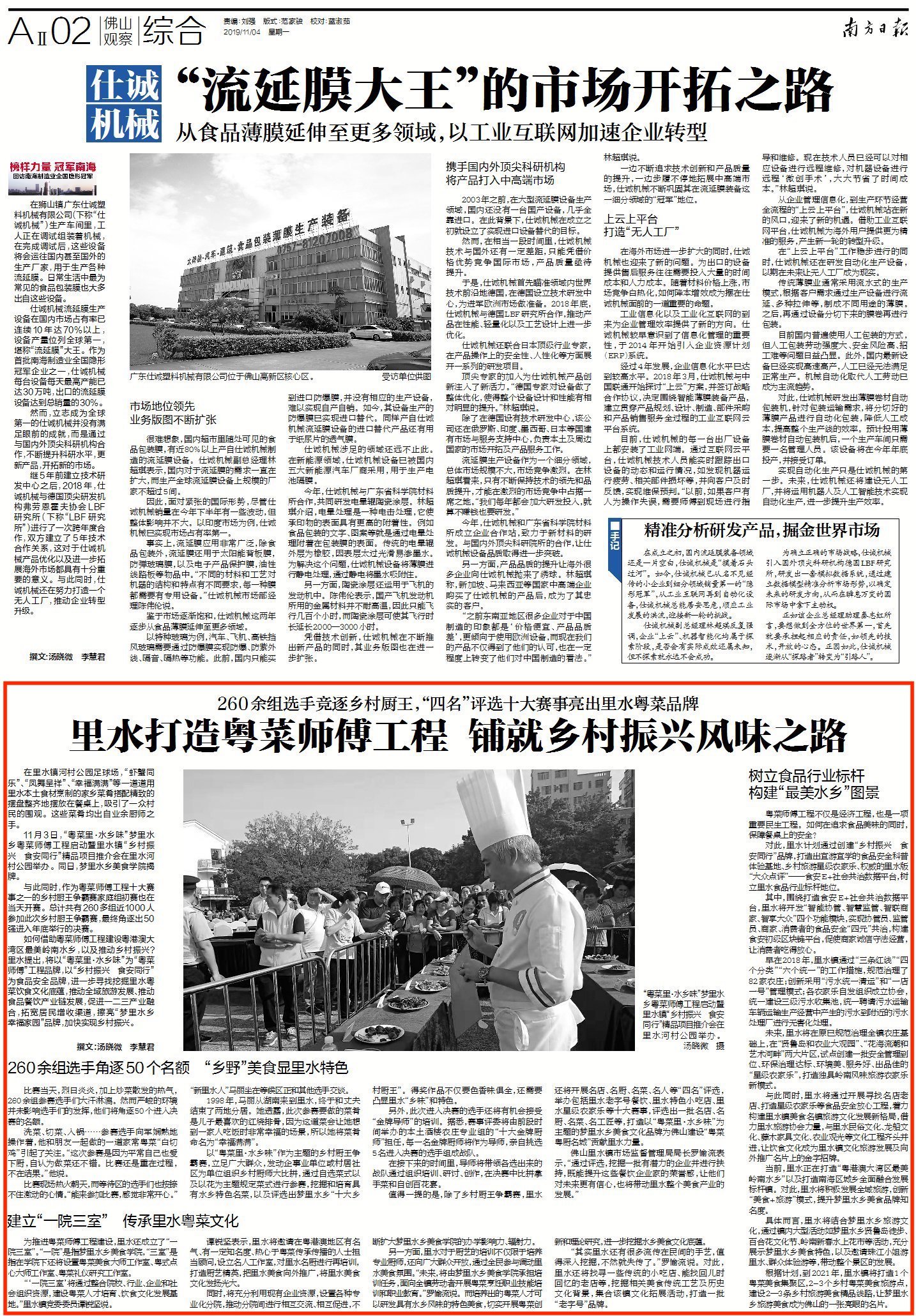 11月3日,“粤菜里·水乡味”梦里水乡粤菜师傅工程启动暨里水镇“乡村振兴 食安同行”精品项目推介会在里水河村公园举办。同日,梦里水乡美食学院揭牌。