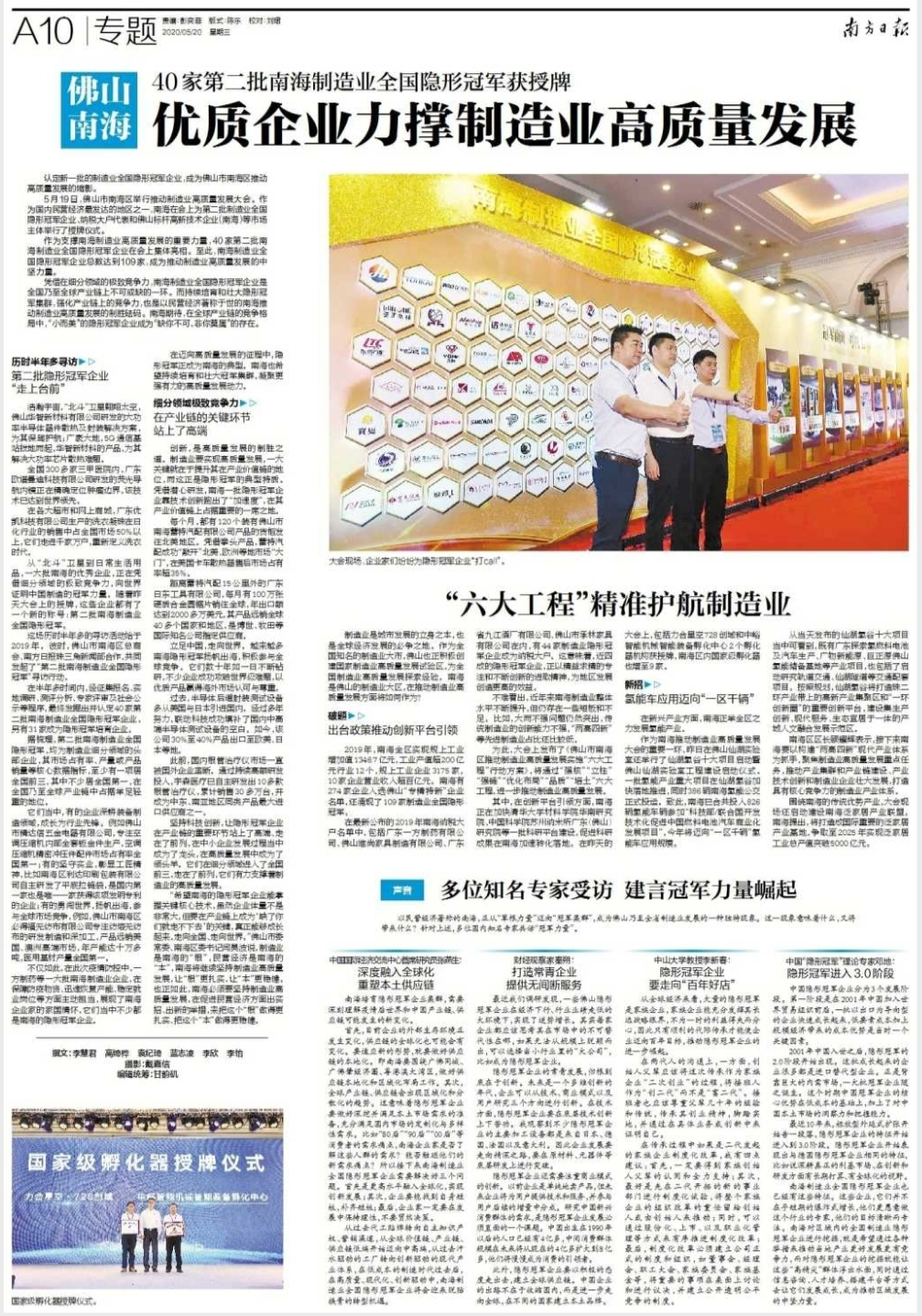 认定新一批的制造业全国隐形冠军企业,成为佛山市南海区推动高质量发展的缩影。